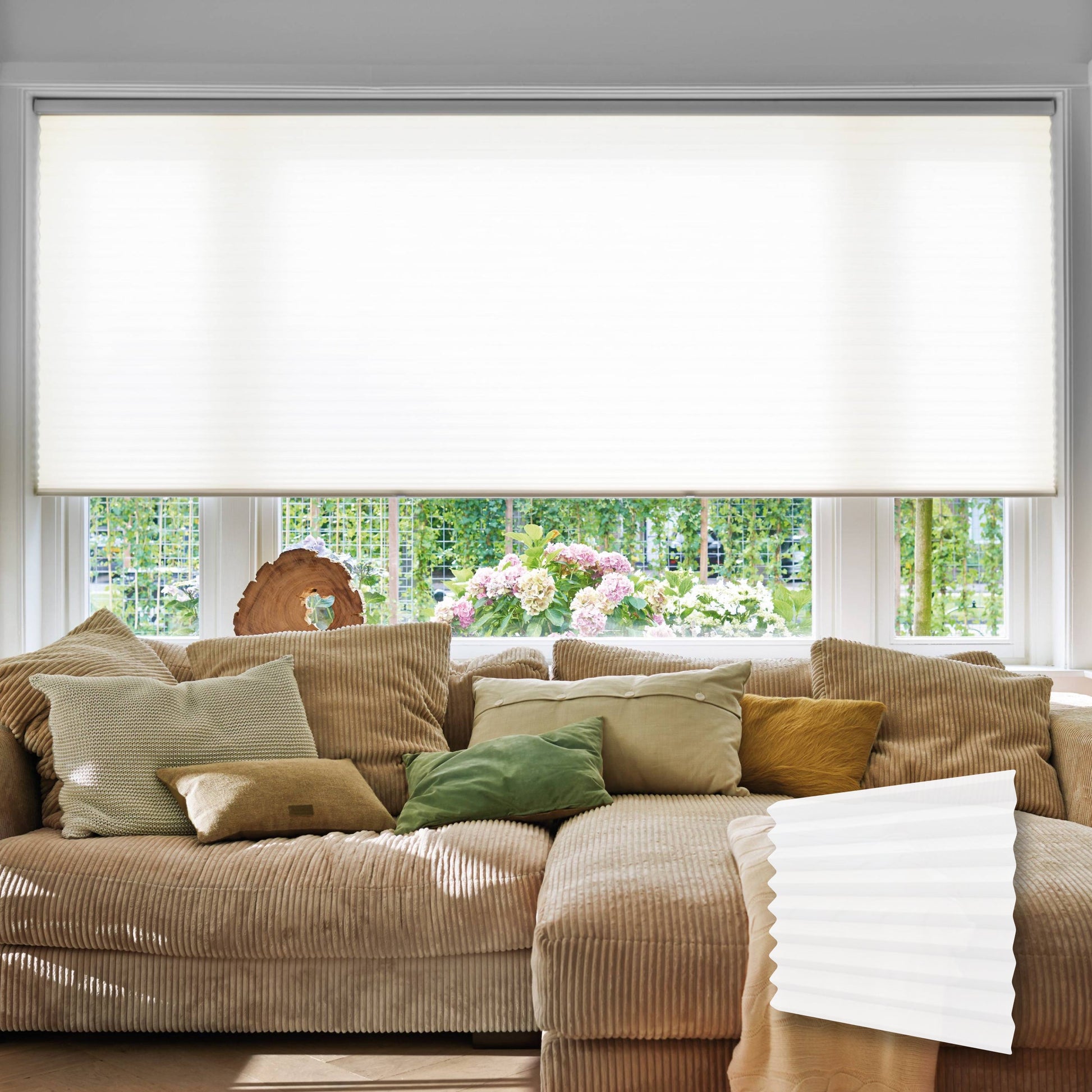 Inspirada nos favos de mel das colmeias, a Persiana Celular é composta por bolsões que ajudam a manter a temperatura do ambiente agradável e absorção acústica.